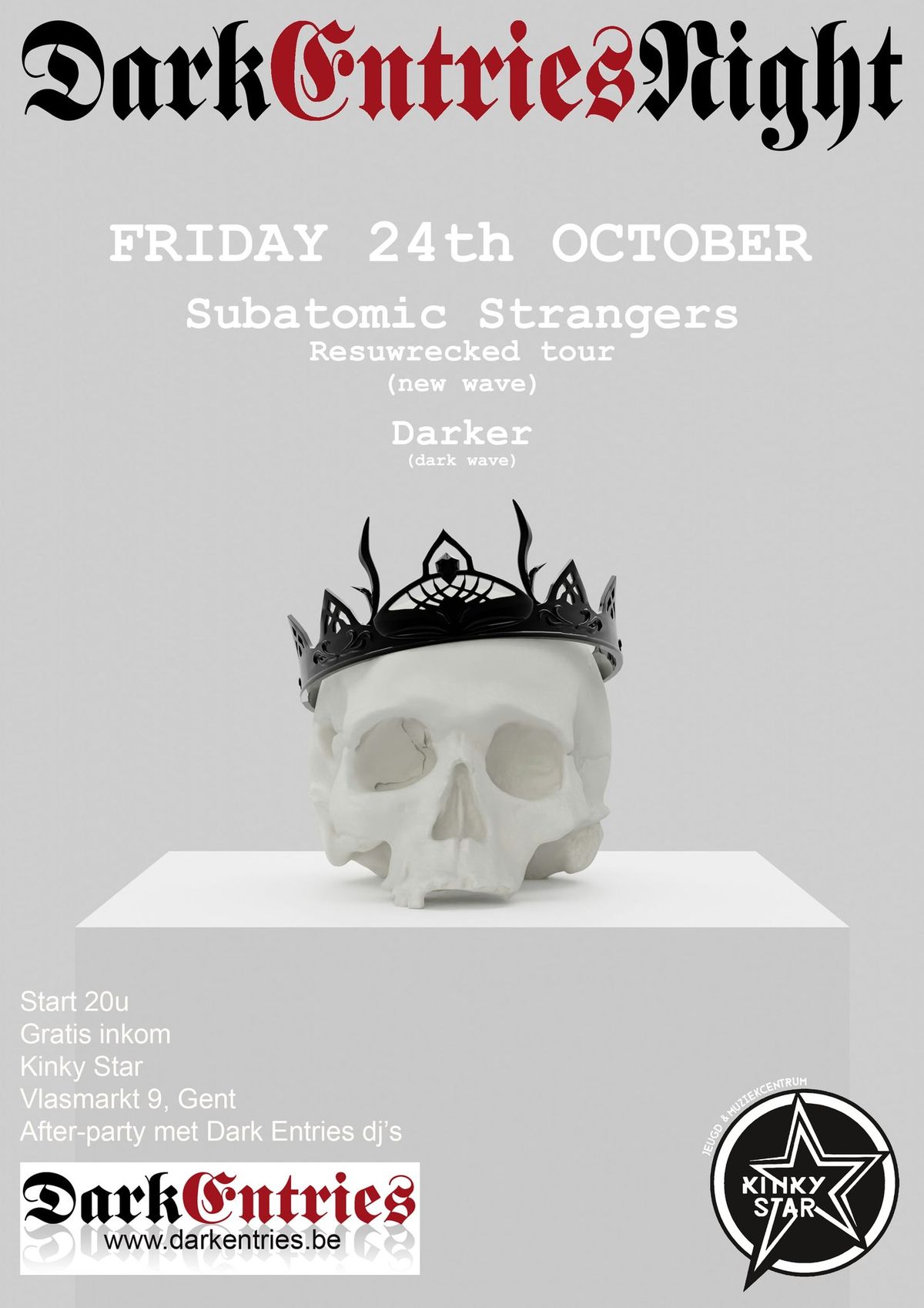 DARKER + SUBATOMIC STRANGERS TOURDATES by DARKER on 01/08/202501/08/2025 DARKER – Live – 10-10-2025 – SO WHAT, Gouda (NL) DARKER – Live – 24-10-2025 – KINKY STAR, Gent (B) DARKER – Live – 25-10-2025 – VORT’N VIS, Ieper (B) DARKER – Live – 07-11-2025 – MEZZ, Breda (NL) DARKER – Live – 08-11-2025 – VOLT, Sittard (NL)